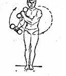 2.练习开始以肘关节为轴,前臂按顺时针或逆时针方向由屈到伸,再由伸到屈的进行绕环运动。屈肘时手心相对,伸肘时手心朝后;重复练习。