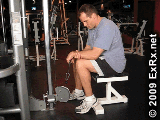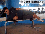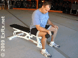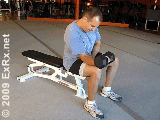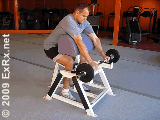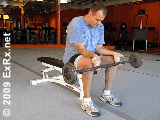 1. 双手反握(手心向上)杠铃或哑铃,握位与肩同宽,双膝跪在地板上,面对长凳的横边,或采用坐姿;小臂放在长凳上,手在长凳另一侧下垂;小臂不动,弯屈手腕,向地面下低杠铃或哑铃。将杠铃或哑铃停止在你不移动小臂尚能将将持住重量的手位。