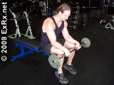 2.在起始姿势不要让杠铃向下滚到指尖,以免在回滚动作中手指肌肉过度疲劳,以至无法锻炼小臂的大肌肉。