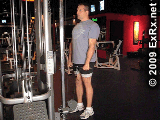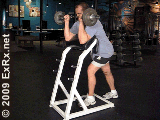 1.直立,挺胸、收腹,稍屈膝、髋,双手身后掌心向后握持杠铃,直臂,调整好身体重心。稍屈或直垂手腕,稍向下滚杠铃。