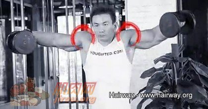 三角肌位於肩關節周圍,並由3個束組成前束、中束和後束,啞鈴側平舉雙臂朝兩側張開與啞鈴同寬,這是特定訓練三角肌中束的練習。