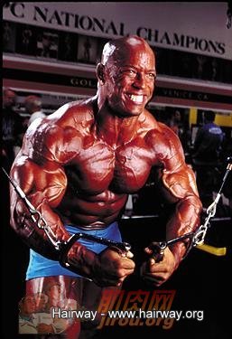 以上講的是針對胸縫的飛鳥動作的技術要求,實際訓練時還有兩個很有特點的補充動作,一個是窄握拉力器下壓,一個是大重量窄握推舉。
