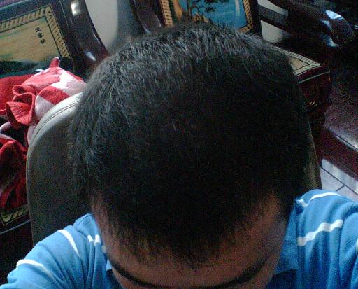 去看過醫生,開過一些養血生髮的藥還有維他命,胱氨酸之類的(他當時也提起過波斯卡,可說會影響生育建議我不吃。所以就沒買)大約吃三個月吧,有了點效果,似乎掉的少了點,後來到學校以後,把以前的藥吃完了,就只買了些維他命,其他的沒吃,大約一直到放寒假左右吧,都這樣,這期間頭髮脫的也不算厲害,但是脫髮範圍好像比以前大了,前額到頭頂中間更是大約只有以前的三,四分之一左右。
