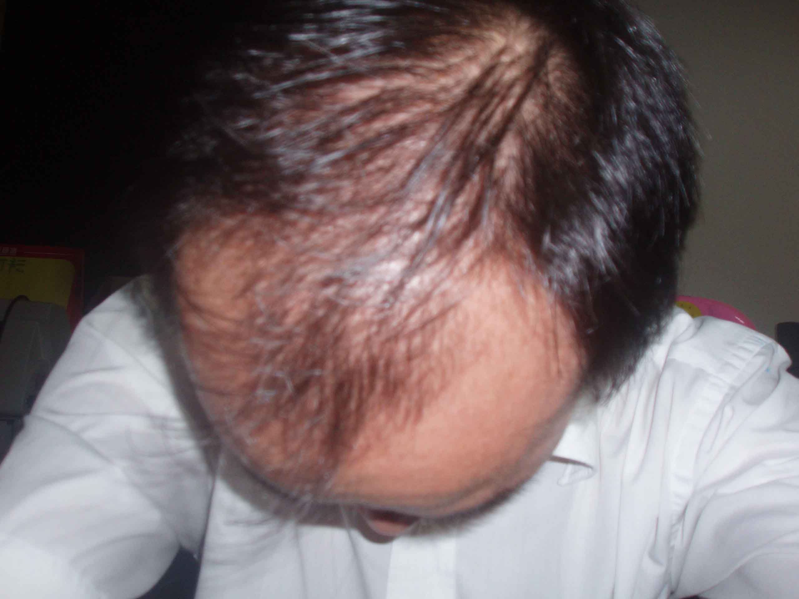 2008年簡直脫得沒法見人了,頭髮又細又軟,很油,由小M變成大M,再到幾乎禿頂!