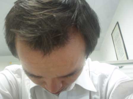 2008年7月12日開始使用波斯卡、Minoxidil 5%及維生素B6,波斯卡是1/5使用,這是7月16日的效果,暫時看不出什麼變化!