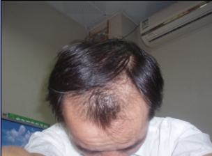 用藥到現在剛好兩個月,對比了一下最開始的照片,似乎好了一點,而平時照鏡子時也發現,前額兩側有些許的小絨毛正在生長,照片中看得不是很明顯。繼續堅持~~~~下面兩張是今天拍的,角度不同,受光線影響。不過還是能看出比最開始的照片好了一點。