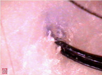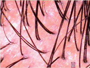 我們在藉由高倍數的放大鏡來檢視毛囊與頭髮的生長情況: