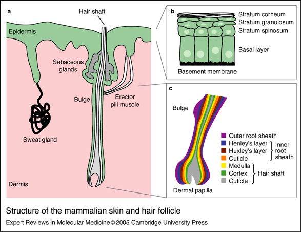 圖出處:1.Structure of the mammalian skin and hair follicle:Cambridge University