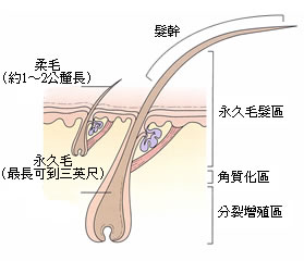 自然脫髮:髮根細胞已角質化,與正在發育中的髮根下端不同。