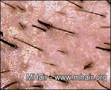 這項 檢驗是用動態影像顯微鏡來測量每平方公分內的頭髮數量,簡單的說,就是用高倍數的放大鏡來觀察頭髮密度。我們可以用這樣的方式來知道你整個頭皮上頭髮的數 量是不是低於正常值。我們也能利用這個測驗來判定你頭頂上的頭髮有沒有比兩旁或後面的頭髮少。用這樣的方式,我們可以清楚的分別你是屬於瀰漫型掉髮或明顯 的雄性禿。