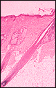 縱向切片與橫向切片有相同的作用,但是比較可以了解髮根處的發炎現象與瘢痕形成的進展。