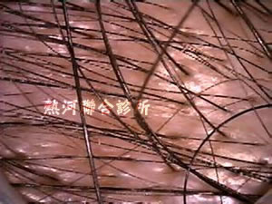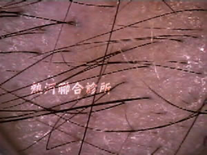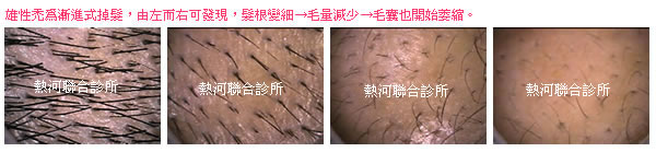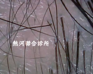 雄性禿之頭髮檢測顯現粗細不一的毛根萎縮