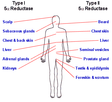 Thigpen AE, Silver RI, Guileyardo JM, Casey ML, McConnell JD, Russell DW. Tissue distribution and ontogeny of steroid 5 alpha-reductase isozyme expression. J Clin Invest. 1993 Aug;92(2):903-10.
