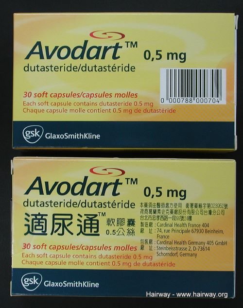 本品為合成的4-azasteroid類化合物,白至淺黃色粉末。Avodart為暗黃色不透明長橢圓形軟膠囊印有紅字-"GX CE2",每顆膠囊含有0.5毫克的有效成分 dutasteride ,溶於caprylic/capric acid的單-雙-甘油酯及butylated hydroxytoluene的混合物中。膠囊殼中的非活性成分為白明膠、甘油及氧化鐵(黃色)。