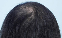 左圖為另一測試者,服用finasteride前 漩渦處 右邊為服用finasteride之後八個月,可明顯看到漩渦處毛髮變正常