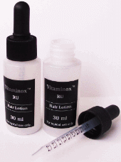 0.5%的濃度:c為實驗前,d為實驗後:四個月後,可見到毛髮密度稍微增加。
