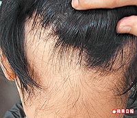 接獲病例的皮膚科開業醫趙昭明說,女子本來髮量就多,燙髮後更蓬,因此想拉直,買了直髮膏依說明書使用,塗第一劑時並無異狀,塗第二劑時頭皮發癢,雖沖淨仍有輕微癢感,原不以為意,未料約經一周,後腦勺一路往上掉髮,隨手一抓都是大把落髮,兩個月來到處就醫仍治不好,後腦勺已快禿光,只能戴帽遮醜。