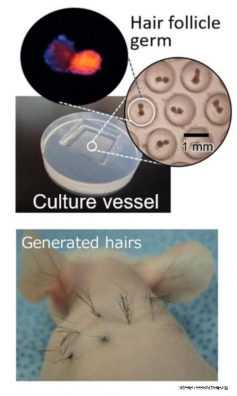 近日日本橫濱國立大學研究人員在 《生物材料》雜誌 ,發布了一篇「毛髮再生技術」論文。在毛髮再生的技術上,體外毛囊細胞(HFGs)是毛髮生殖的來源,所以其最重要的關鍵就是讓大量被製造,這回他們在短時間內成功培育出 5000 個體外毛囊生殖細胞(HFGs)移植到老鼠頂上後讓牠們長出黑髮,這項實驗所要證實的為他們做到大規模製造毛囊細胞這項關鍵,讓毛髮能夠體外生殖。