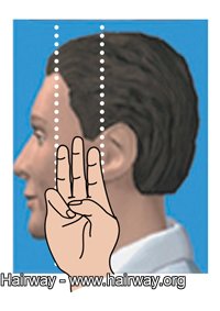 ■以額頭上M字頂端的垂直線與耳朵前緣的垂直線寬度, 在三指幅(即食 指、中指加上無名指的寬度)以內就有掉髮的危機。