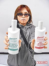 史雲遜店內擺放著大瓶小瓶的護髮、健髮用品。