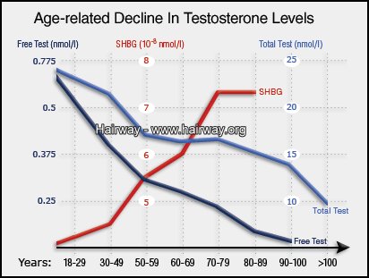 圖示:年齡、睪固酮濃度、SHBG的變化