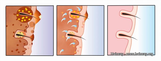 「雄性禿與遺傳及男性的雄性素有關,雄性素是正常男性應有的激素,是因為遺傳基因的影響,導致患者頭皮毛囊上特殊的酶(5α-reductase, 及17-β Hydroxysteroid dehydrogenase)活性增加,將雄性素轉變成活性更強的二氫睪固酮,導致毛囊萎縮及毛髮掉落。因此並非內分泌異常導致落髮。雄性禿患者的頭皮,因為有活性更強的二氫睪固酮在作怪,所以皮脂腺的分泌會增加,容易合併頭皮油膩,導致脂漏性皮膚炎、毛囊炎等疾病,頭皮會有掉屑、發癢及膿皰等症狀。並不是因為頭皮長了痘痘,才會掉頭髮。」