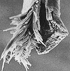 頭髮外層覆蓋像魚鱗一樣的外皮(圖一)。一根健康的頭髮有層層相疊的外層鱗片。如果鱗片服貼,頭髮看起來會很有光澤,用梳子梳和鬃刷刷頭髮就會很滑順,鱗片被胜肽混合物黏貼住,像似小學生使用的黏膠。洗髮精和肥皂卻會移除這個膠質,然後使鱗片鬆開。高品質潤髮(護髮)乳把受損的鱗片黏貼回去。小量的泛酸(維他命B-5)也用於幫助膠化。如果鱗片保持打開的狀態,它會在髮鞘開始撕裂(圖二),最後變成髮鞘分叉(圖三)。