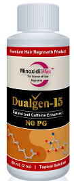 Formulation exclusively available at Minoxidilmax: DualGen-15 NO PG has the maximum strength of FDA approved hair growth stimulator (15% minoxidil), DHT blocker (5% azelaic acid), minoxidil enhancer (0.025% retinol) and hair follicle stimulator (0.001% caffeine). No one else is offering a product that has these four clinically and scientifically proven ingredients in one formula.