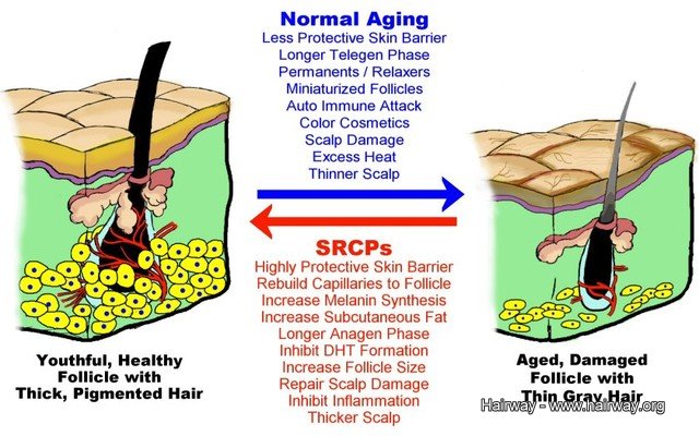 SRCPs增殖毛囊細胞,減少程序性細胞的死亡 (apoptosis). |