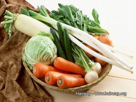平常多食用富含維B及維C的新鮮蔬菜和水果,如胡蘿蔔、獼猴桃,對頭髮恢復健康亮澤有事半功倍的效果。