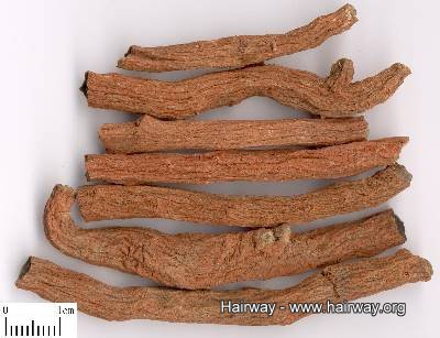丹參的主要功效是活血祛瘀。由於含有豐富的維生素及微量元素鋅、銅、鐵等,能促進毛髮黑色素的生成,亦能改善因微量元素缺乏而造成的白髮、黃發、頭髮乾燥等症。同時丹參本身為紅色,熬製後紅色紫草素溶於油中,具有化妝美容作用,可將其添加於各種化妝品,或與其它天然藥物配合應用,則有止癢、去屑、防治脫髮、烏髮、潤發、增強皮膚彈性等多種功能。