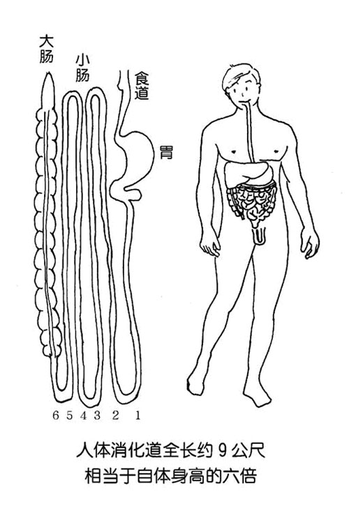 周教授:認真說起來每個人的身高有所不同,消化道長度也就沒有統一的尺度,但是按比例算,它的全長約相當於自體身高的6倍。