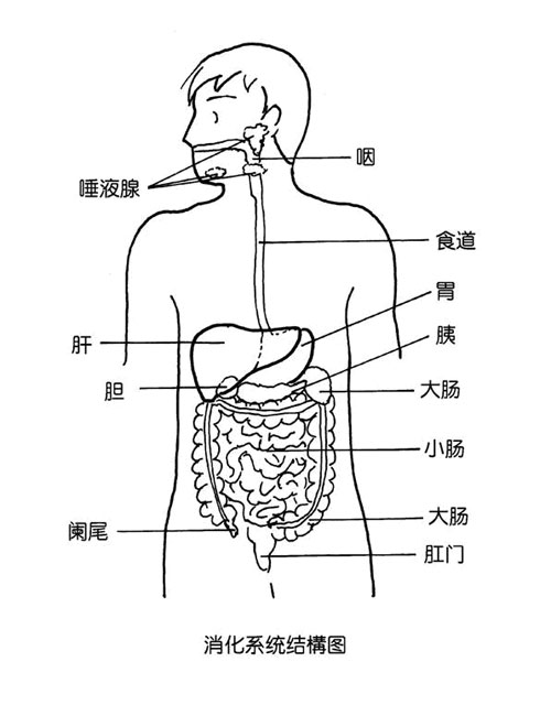 周教授:重點是,除了從口腔咽連接到食道這一段比較垂直以外,穿過橫膈膜以後(教授邊講解邊用手在胸腹部比劃著),從十二指腸、小腸,到大腸段落的升結腸、橫結腸、降結腸,最後拐個彎到乙狀結腸,幾乎都在繞圈圈地盤曲起來。