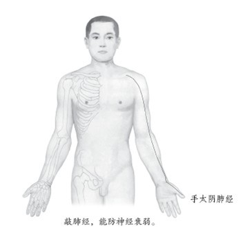 另外,每天可以順著肺經循行的路線,從胸到手敲一敲肺經。當然,還要注意生活中一些容易傷肺的風水,比如,乾燥的天氣,受污染的河流,經常抽煙,吃太辣的食物,等等。家中的窗簾等物什最好不要選深藍色的,以免室內產生陰森之氣,讓人消極悲觀。
