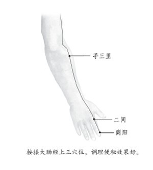 大腸經,對現代醫學所講的淋巴系統有自然保護功能,經常刺激可以增強我們的免疫力,防止淋巴結核病的生成。二間、商陽、手三里都是大腸經上很重要的穴位,主治鼻衄、齒痛等五官科疾患,對便秘等大腸積熱很有療效。