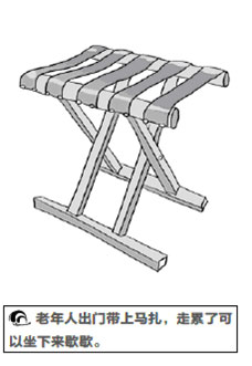 馬扎,生活中再普通不過的用品,小巧方便實用,攜帶方便,坐起來也挺舒服。老人出門時帶上它,能夠滿足隨時隨地休息的需要。詩曰:「穩坐看山權當榻,不妨折疊入游囊。」老人身體再好,但畢竟年齡大了,不耐勞,有個馬扎,走累了坐下來歇歇,可以說,它是保證老人平安出行的必需品。