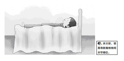 為什麼會出現這樣的情況呢?我們經過詢問發現這位患者有長期睡軟床的習慣。我想這可能就是病因所在了。如果睡的床過於柔軟,身體的重心就會落在肩背和臀部,導致從胸椎到腰椎的部分不能著力,而人睡著後韌帶、肌肉是很放鬆的,胸椎各關節失去了保護,這樣我們在翻身時就很容易因脊椎受力不均而導致胸椎椎間關節錯位。