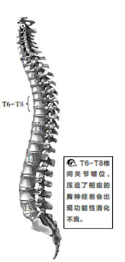 一般來說,功能性消化不良在門診中很常見。很多人都知道消化不良與不良飲食、不良情緒等有關。事實上,功能性消化不良與我們的胸椎有關。當T6-T8段胸椎錯位,壓迫了支配小腸的胸神經,就會出現上腹不適或疼痛、腹脹、腹瀉、早飽、食慾不振、燒心、打飽嗝、噁心、嘔吐、燒灼或反胃等上消化道症狀。如我們出現上述症狀,胃鏡檢查與症狀又不相符時,就應考慮是不是胸椎出問題了,需到醫院做進一步檢查。