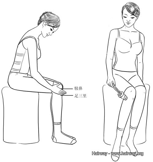 提示:足三里位於膝蓋外側的凹陷處(犢鼻)下3寸。