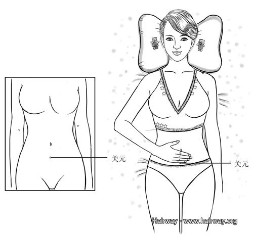 關元穴:此穴用灸的效果最好,它是男子藏精、女子藏血的位置。現在很多人都沒有時間灸,那就用我一位朋友提供的「黃豆灸法」。將雞蛋大小的布包放入4/5的黃豆,在微波爐內轉1分鐘,放在關元穴上。不限灸的時間,越長越好。睡前灸關元穴,更有促進睡眠的療效。