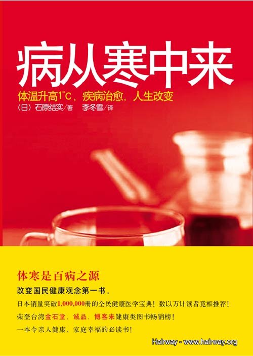日本最著名的健康養生專家石原結實,是自然養生方法的忠實實踐者,他通過大量病患的親身體驗證明了提高體溫對癌症、抑鬱症、肥胖和心臟病的積極作用。近年來,他通過著書、電視訪談等方式不遺餘力地向大眾推廣自然養生方法,讓人們改正飲食習慣,認識對我們健康不利的生活誤區,提倡進行小型節食,對運動,多吃符合自己體質的健康食品,徹底告別低體溫病,讓每個人都知道——溫暖的身體才是健康的身體!「提高體溫、早餐節食」成為日本最流行的養生方式。