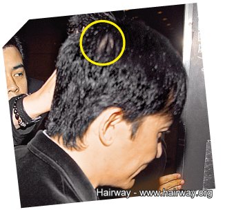偉仔20日現身時,被拍到出現圓形禿(圓圈處)