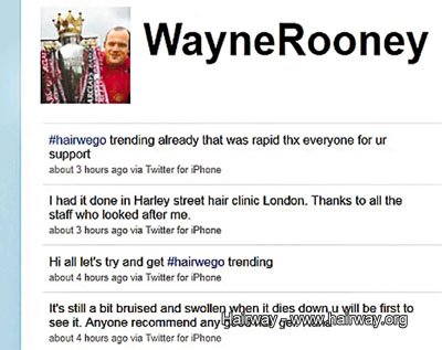 英超球星朗尼成名得早,但也面對年少禿頭的煩惱,髮線和球壇地位同步向上移,有報道指他近日秘密植髮。他前日在社交網站twitter大方承認進行植髮手術,更與74萬名追隨者大開玩笑,要他們介紹定型鎹喱讓他「gel頭」(圖),似乎對植髮手術非常有信心。