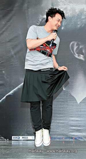 看到舞台上放大的專輯海報,陳奕迅突然驚覺:「哇!頭髮怎麼這麼少,我好像就要成為第一個有『地中海'的歌手了。」他從不介意自己的脫髮危機,也不會刻意打探生發秘方,自認不是靠外型吃飯的歌手,所以強調一切順其自然。