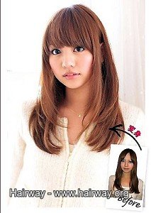 髮型詮釋:變身之前,是一個普通的長直髮。變身之後,瀏海薄了,而且同一方向的內卷設計,即使整體造型增添了動感,也是目光顯得柔和了許多。把剩下的頭髮進行有層次的修剪,再用風筒吹出內卷的效果,剛才較顯沉悶的長直髮,立馬飄逸起來。