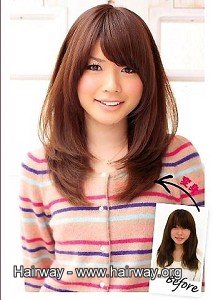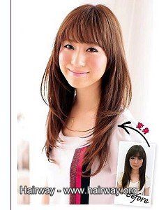 髮型詮釋:變身前,髮色是東方人自然的純黑色,顯得有點babyface,又像是老態龍鍾的嬤嬤。變身後,髮型師進行了有層次的修剪,依然保留了長瀏海,而且進行了外翻的捲髮處理,整體造型顯得輕盈、活力了很多。