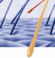 四、用手指拉頭髮會發現比正常多帶有杵狀根部的頭髮。(正常人只有10%)
