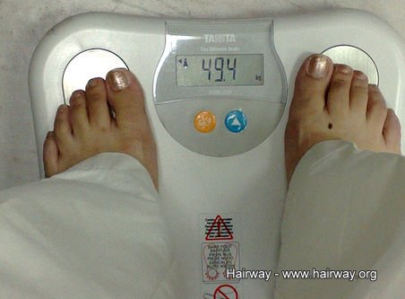 家醫科醫師表示,一般理想的減重,應每週減約0.5至1公斤,若每週超過1.5公斤,或極度控制飲食,尤其不吃澱粉及肉類,如此缺乏蛋白質及必需胺基酸等營養素,會導致頭髮快速退化。進一步解釋,正常頭髮分成3階段,生長期約3-7年,便開始退化,在2、3個月後便會進入靜止期才開始掉髮。而極度控制飲食的患者,因營養攝取不足,因此頭髮快速進入退化期,並在減重2至3個月後產生掉髮。