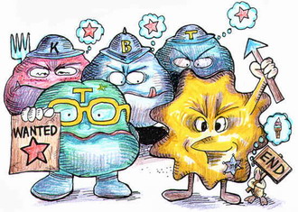 回歸平靜,當入侵病菌完全被清除後,取消戒嚴令,各路動員來的細胞均回營休息,只留下少數會記憶病菌特徵的細胞 (如後排那三隻細胞),
