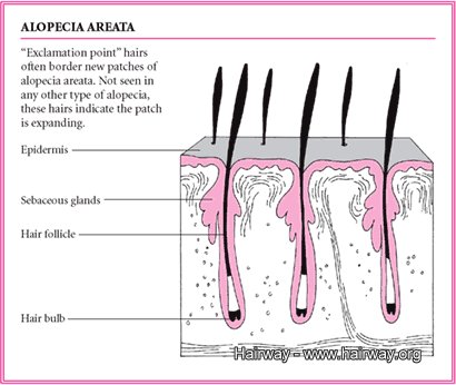 局部免疫療法,可說是最後的手段,透過塗抹一些過敏物質,最初是使用DNCB〈dinitrochlorbenzene〉,但因有致癌的危險,目前已改用像是squaric acid dibutyl ester、Primulu obconica、diphenylcyclopropenone等物質,頭一次塗抹後兩週開始由低濃度逐漸往上,每週塗抹至局部出現輕度過敏性溼疹反應,之後持續治療到完全再生,約要6到12個月見效,大約有百分之四十的患者可耐受治療,而在接受六個月的連續治療後會長出至少50%頭髮,之後再逐漸減少塗抹頻率,每月一次持續半年到一年。免疫療法的生髮效果,最符合現在的實證醫學,然而對於全頭禿患者,往往長出來的部分並不完全,一旦停止,1/3患者辛苦長出的頭髮可能又會掉落。此種治療除去需每周就診的不便外,局部濕疹、癢感、形成水疱都頗為常見,至少50%出現,甚至有4成會出現自體激敏化,也就是在未治療處也產生濕疹或過敏現象。另外也會有淋巴結腫大及局部色素沉著或白斑現象。但上述的局部治療即使有效,也只能有局部效果,無法防止其他部位的持續掉髮,要全面性防止掉髮一般是用高劑量口服(6周、每周一次 40mg、每周兩次5mg betamethasone或每月一次)或住院點滴注射類固醇,約需要半年療程,但年紀較大、有高血壓、心臟病、糖尿病或肝功能異常、B型或C型肝炎帶原者不建議此種方式治療。高劑量點滴注射類固醇其它常見副作用還包括感染、高血糖、高血壓、腸胃症狀(消化不良、噁心、腹瀉)、精神症狀(躁動、失眠、興奮)、臉潮紅、關節積水、紅疹、心悸、頭痛、出汗、味覺異常、肌肉骨骼酸痛、月經失調等,但一般停藥後一兩天即可消失,但長期反覆治療也會引起白內障及滿月臉等副作用。理論上口服的環孢黴素較為安全,但需要自費使用,價格昂貴。另外也有合併methotrexate (MTX) 15-25mg及口服類固醇20mg的報告,約有6-7成患者效果良好,平均在3月後生髮,之後仍須持續治療半年以上,但停藥後約半數復發,再治療又會有效。如果單用MTX則有效性及生髮時間都是相差一倍。初次發病、病史在2年內、較年輕、無異位性、無指甲侵犯者,癒後較佳。最新的報告則是用生物製劑如efalizumab、alefacept,但費用高昂,一年高達50萬。